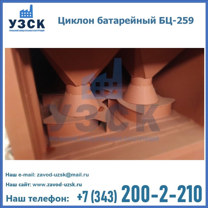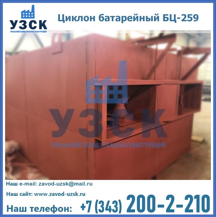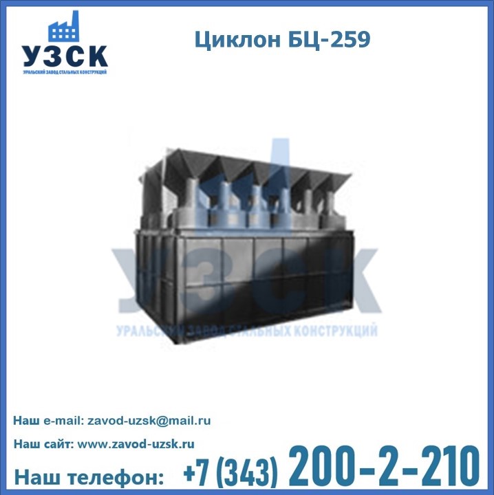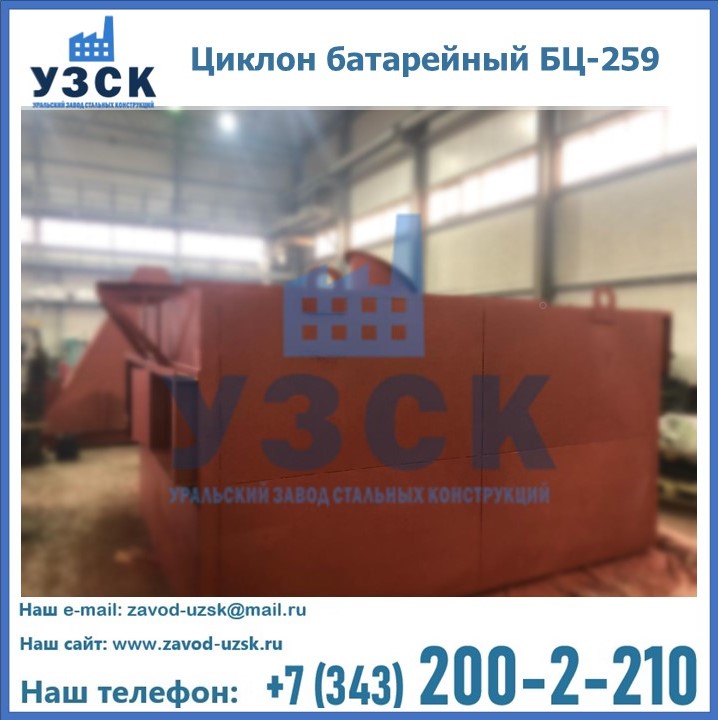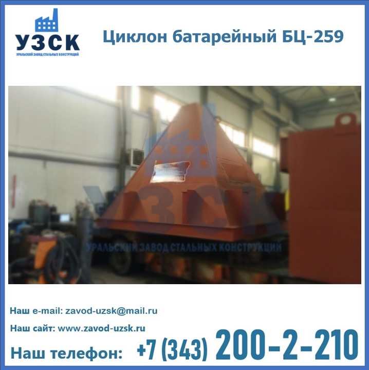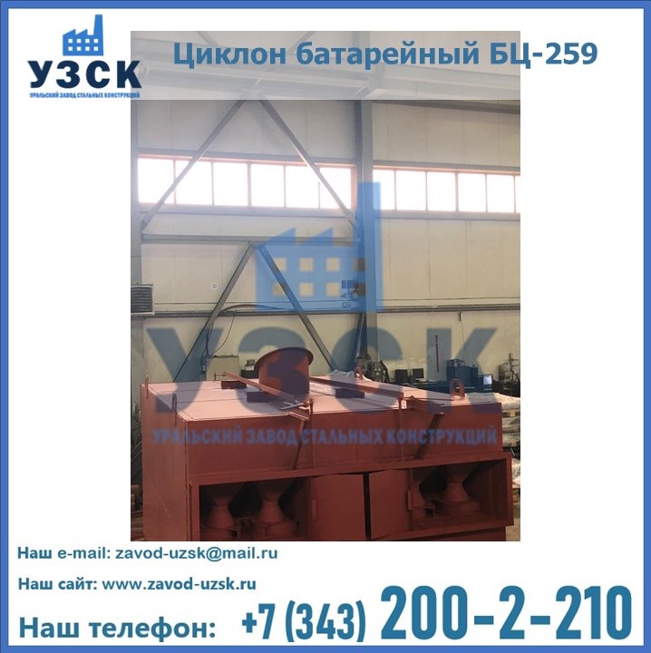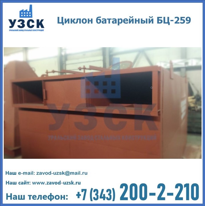 Приобрести качественное оборудование, в том числе, циклоны БЦ-259, можно в компании УЗСК в Екатеринбурге. Мы предлагаем долговечную и надежную продукцию по приемлемой цене. Заказать и купить циклоны или другие изделия высокого качества можно через сайт Уральского Завода Стальных Конструкций, или позвонив по указанному в разделе «Контакты» телефону.