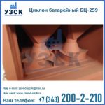 Батарейные циклоны модели БЦ-259 конструируются из нескольких металлических труб (выхлопных отводов), диаметр которых составляет около 26, 9 см. Элементы устанавливаются в параллельной плоскости и объединены корпусом с общей подводкой. Такие трубы предназначены для выхлопа и состоят из специальных заворачивающих лопаток, решетчатых элементов и опорных стоек футляра. Основную наружную панель оснащают патрубком для соединения и вибробункером, помимо этого, на панели устанавливают теплоизоляцию.