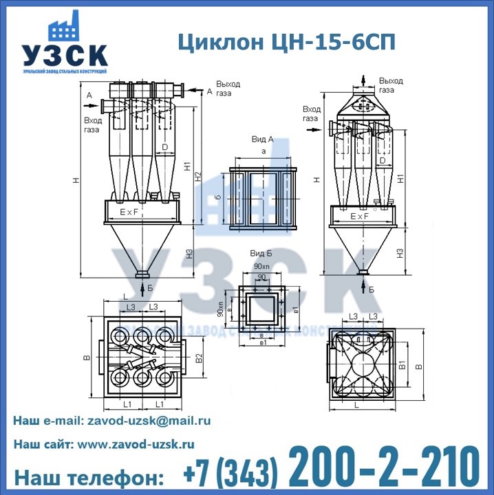 Завод «УЗСК» в Екатеринбурге предлагает большой выбор циклонов ЦН-15-900×6СП и прочих устройств, полностью укомплектованных и готовых к эксплуатации. Мы гарантируем соответствие оборудования всем требованиям ГОСТ и ТУ, износостойкость и высокую производительность предлагаемого оборудования. Уральский Завод Стальных Конструкций изготавливает и продает надежное, эффективное и производительное оборудование, имеющее длительную гарантию и большой эксплуатационный ресурс. Если требуется изготовить циклон нестандартных размеров, то такой вариант выполнения заказа тоже предусмотрен, так как предприятие имеет собственные производственные площади и надежных поставщиков. На все поставляемое или производимое оборудование имеются чертежи и прочая техническая документация. Заказать и купить циклоны или прочее оборудование высокого качества и по доступной цене можно через наш сайт или по указанному в разделе «Контакты» телефону.