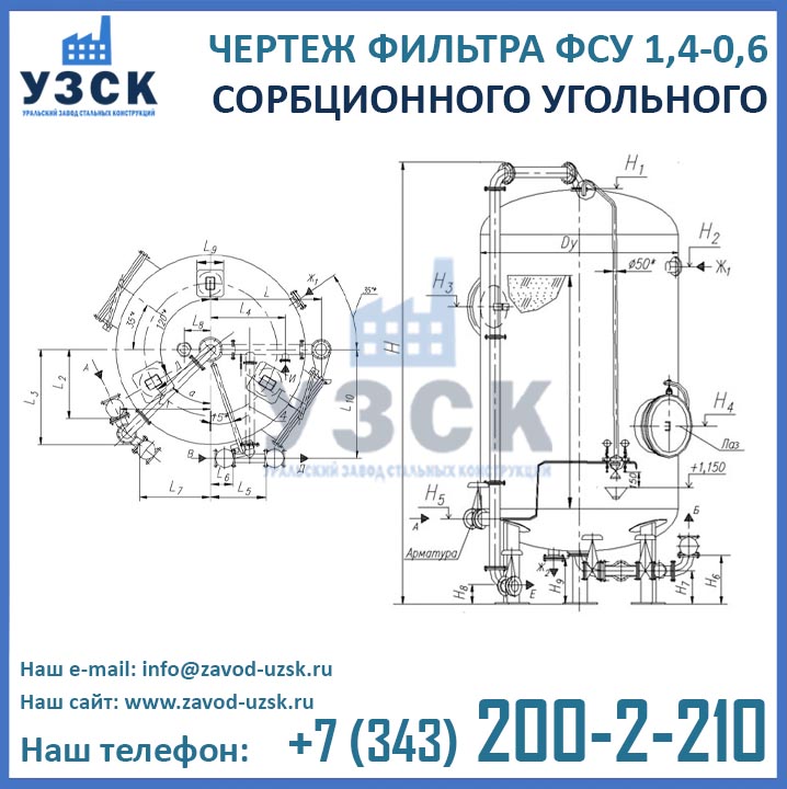 Если вы ищете фильтры ФСУ-1,4-0,6 в Екатеринбурге от изготовителя, то Вы на правильном пути! Уральский завод стальных конструкций – непосредственный производитель сорбционных фильтров ФСУ, предлагающий самые выгодные цены на ФСУ-1.4-0.6 в Екатеринбурге. По окончании процесса производства угольные фильтры проходят гидравлические испытания пробным давлением 0,9 МПа на аттестованном гидростенде, находящимся в собственности завода УЗСК. Мы гарантируем высокое качество выпускаемой продукции, и в этом уже убедились ведущие предприятия промышленного сектора России и стран ЕАЭС (см. раздел «Наши клиенты»).