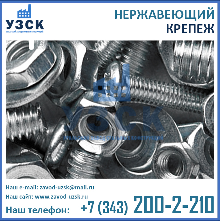 Уральский Завод Стальных Конструкций – это непосредственный производитель нержавеющего крепежа, выпускающий продукцию высокого качества, подтвержденную сертификатами ИСО, декларациями соответствия, и прочими необходимыми разрешительными документами. В штате завода УЗСК только высококвалифицированные сотрудники, имеющие профильное образование. Сварочные работы осуществляют специалисты, аттестованные по технологии НАКС. А инженеры конструкторского отдела нашего Завода помогут Вам в выборе подходящих именно Вам метизов из нержавеющей стали, подготовят необходимые чертежи и схемы, а также разработают конструкторскую документацию для Вашего заказа.