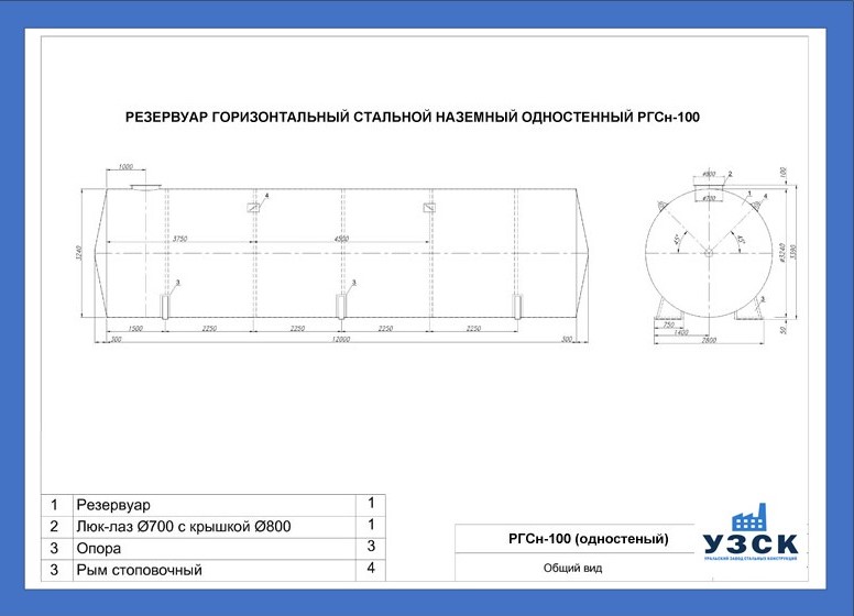РГСн-100: горизонтальный резервуар одностенный наземного расположения;