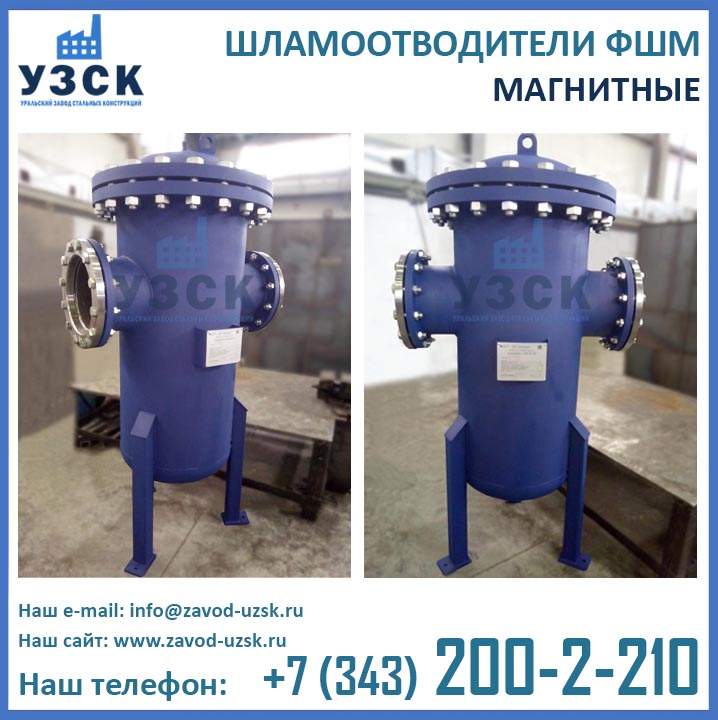 Являясь непосредственным изготовителем фильтров магнитных ФШМ, Уральский завод стальных конструкций предлагает самые низкие цены на шламоотделители ФШМ Ду250 в Екатеринбурге. Производство магнитных шламоотводителей осуществляется в самые короткие сроки специалистами сварочного производства НАКС по аттестованной технологии сварки при помощи сварочного оборудования, аттестованного Национальным агентством контроля сварки.